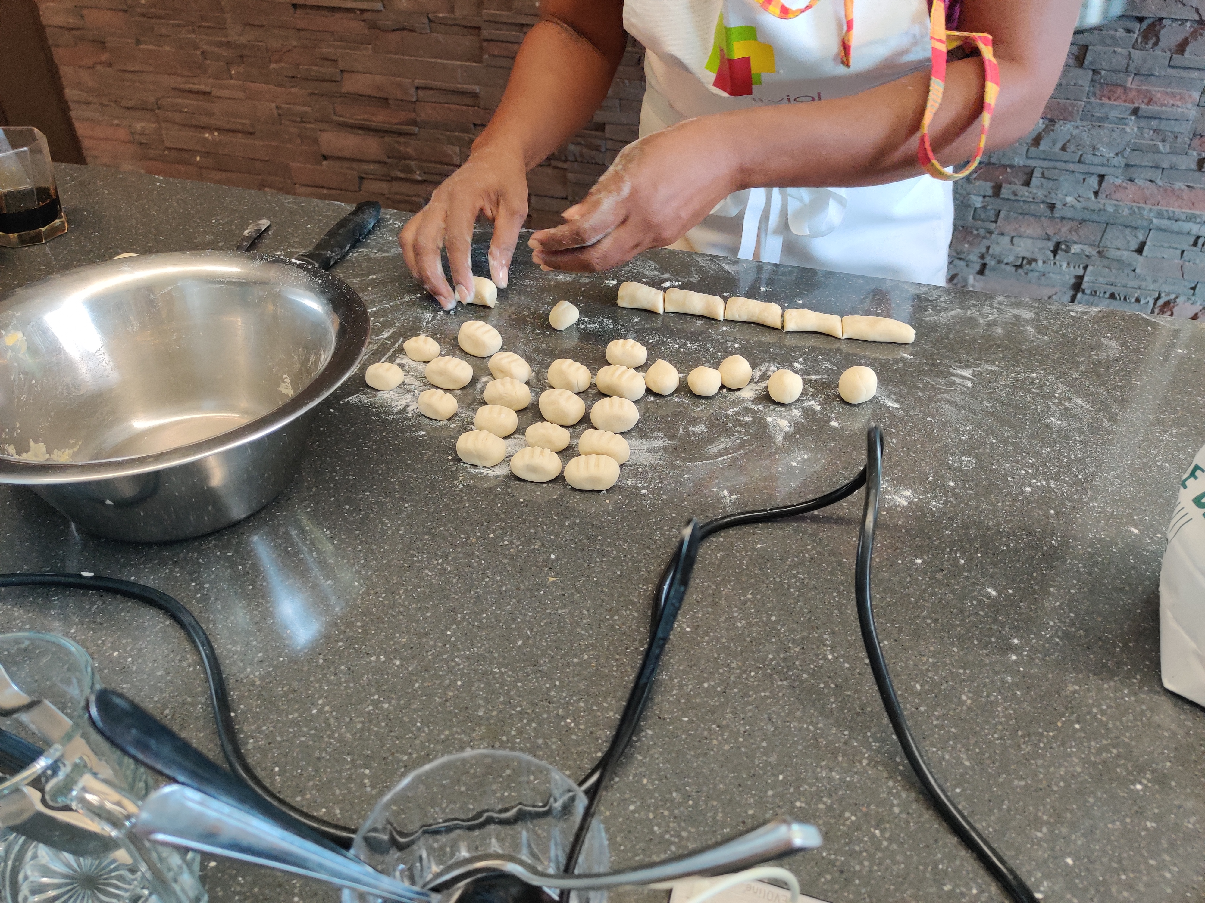 Nous devrions faire une entrée, un plat, un dessert et un apéritif. Nous étions 4 et donc le Chef a réparti les plats comme suit :