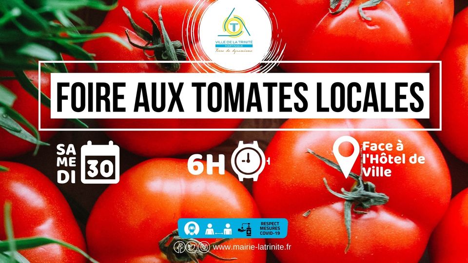 La ville de Trinité vous convie à sa foire aux tomates ! Pas moins de 6 tonnes de tomates, vous seront proposées à 1€ le kg. Les producteurs locaux vous donnent rdv à partir de 6h, sur le Front de Mer du bourg. A ce prix là, il ne faudra pas trop tarder !