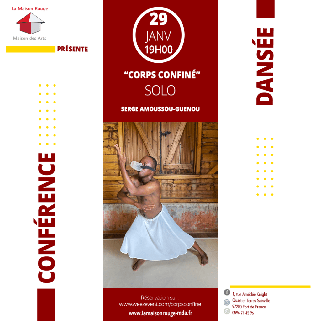 La maison des arts, vous invite à la conférence dansée « Corps confiné » de l’artiste Serge Amoussou-Guenou, à 19h. Le pitch ? Un artiste confiné décide d’exprimer « son sentiment d’oppression et d’enclavement » à travers la danse, se refusant de subir l’isolement imposé par le confinement. Envie de voir ce que ça donne ? Rdv ici.