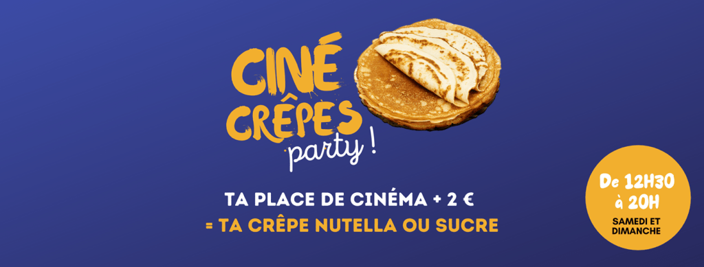 La chandeleur qui tombe en pleine semaine, c’est balaud ! Alors, pour faire durer le plaisir, le cinéma Madiana propose une ciné-crêpe party, si vous venez voir un film. Une crêpe offerte pour un place achetée + 2€.
