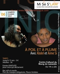 Pour cela, rdv au centre culturel du bourg du Lamentin de 19h à 22h pour Mi Sé S’LAM. à noter que l’entrée est gratuite pour ceux qui déclament 😏.
