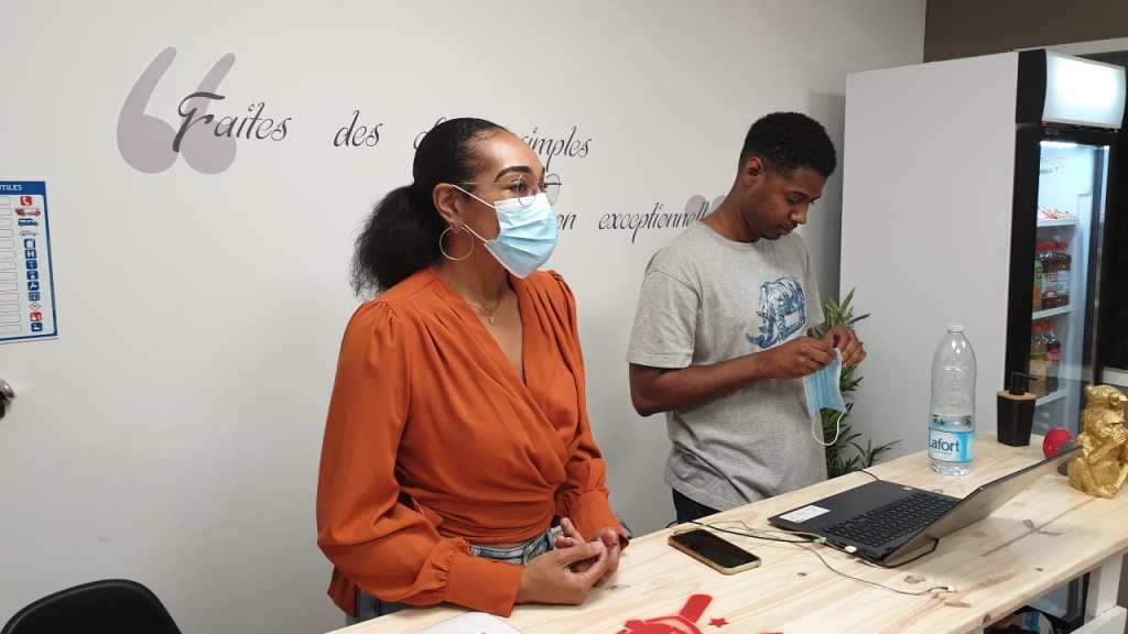 Le local se trouve au lotissement la trompeuse (pont de la Sara), il faut tourner à droite à la 2ème intersection. Un petit salon extérieur avec un parasol indique le lieu. L’enseigne n’est pas encore installée mais vous verrez l’affiche avec les logos à travers la porte vitrée. Nous sommes trois, on nous accueille en nous expliquant le concept.