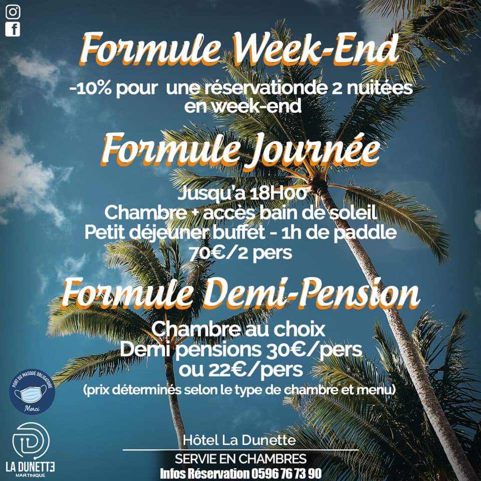Détail des 3 formules proposées ici. Réservations : 0596 76 73 90