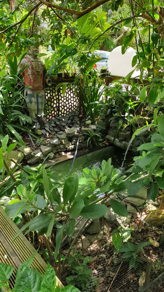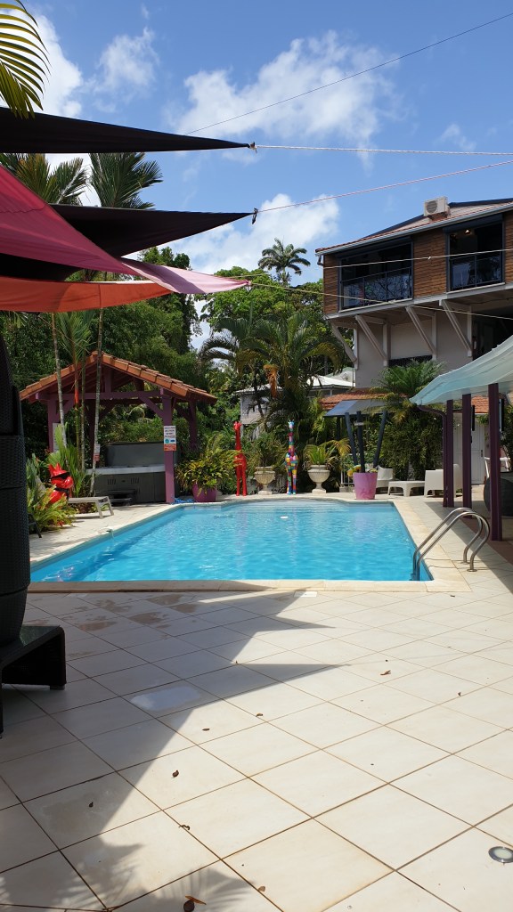 Je suis tout de suite impressionnée par la végétation luxuriante. Monsieur Blandy m’accueille et me fait visiter son paradis. Je suis sous le charme : piscine chauffée à 32°, jacuzzi, sauna, espaces verts… Un havre de paix, au cœur de Fort-de-France. C’est juste incroyable de passer ce portail et de découvrir autant de belles choses.