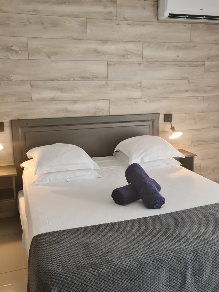 Je vous avoue que je ne voyais pas du tout où il se situait, mais Waze, mon ami nous a mené à bon port et, ce qui est sûr est que je n’aurais jamais imaginé qu’un hôtel se situait à cet endroit. En descendant près du collège, vous tournez à gauche et ensuite, vous le trouverez dans une petite rue qui se trouvera sur votre droite. Nous sommes donc arrivées avant 15h pour profiter de la piscine et avons été aimablement reçues par Romain qui nous a conduit jusqu’à notre chambre et expliqué comment on pouvait se rendre à la plage de l’hôtel. Il nous a aussi donné son numéro, en cas de problèmes éventuels.