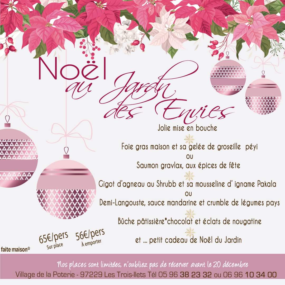 Vous préférez une bonne langouste ? Le Jardin des envies vous propose, en plus de sa carte à emporter, des mets de Noël tété dwèt : foie gras du jardin et sa gelée de groseilles locales à 16 euros, le saumon Gravlax aux épices de fêtes à 10 euros, le gigot d agneau au shrub et sa mousseline d’igname Pakala à 23 euros, la demi langouste grillée sauce mandarine, crumble de légumes péyi, mayonnaise au piments doux à 36 euros. Une assiette de demi-Langouste, ouassous (4), palourdes, steak de marlin (100gr) grillés et crumble de légumes péyi, avec mayonnaise au piments doux est à 49 euros. Réservations et commandes au 0696103400 ou 0696710883 ou 0596382332.
