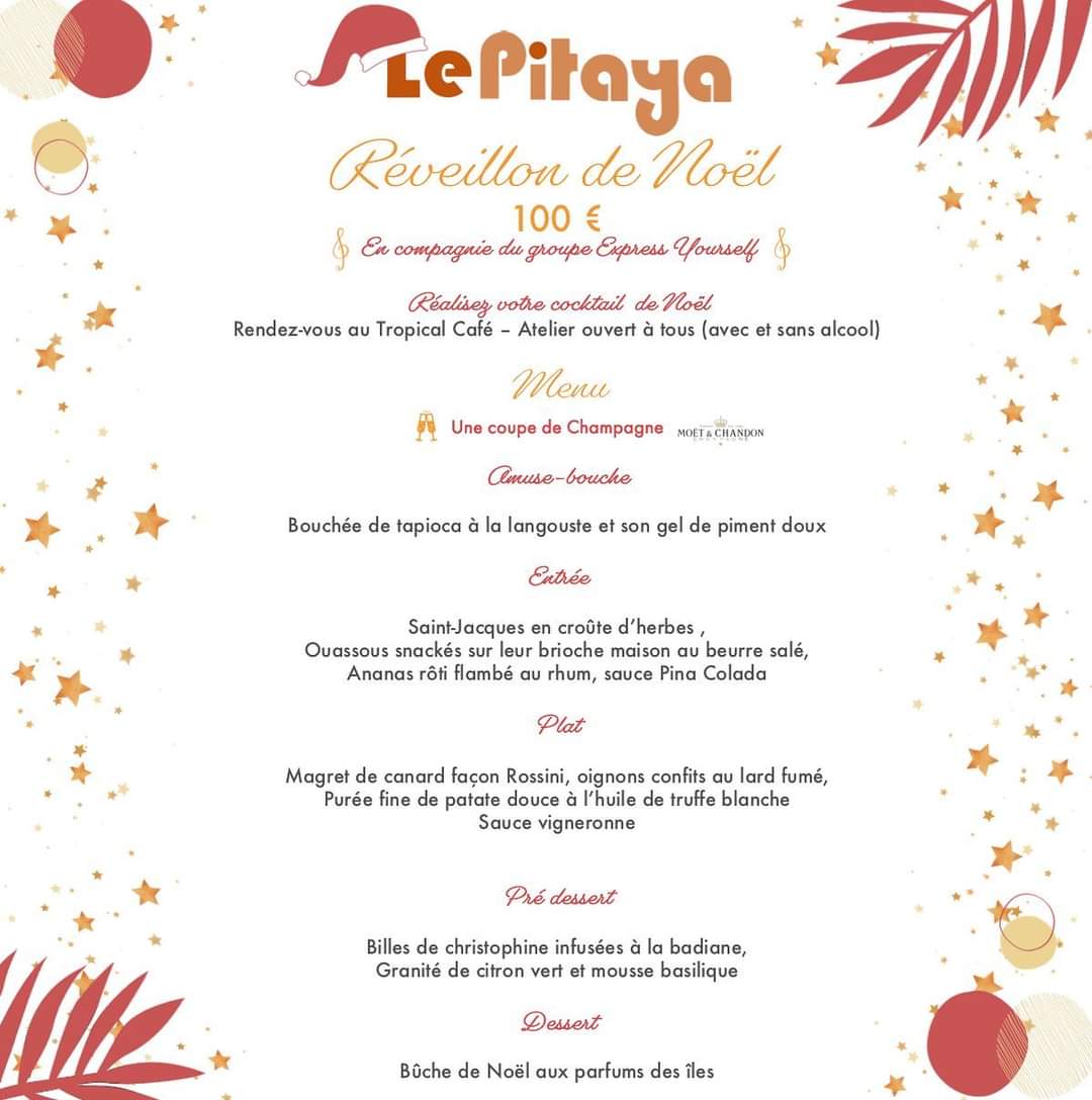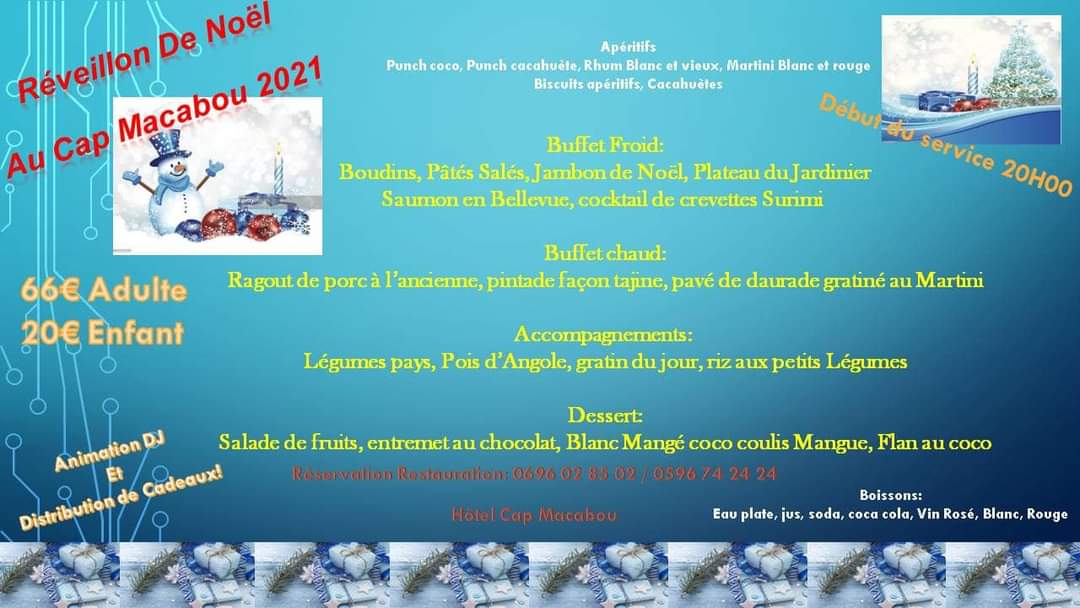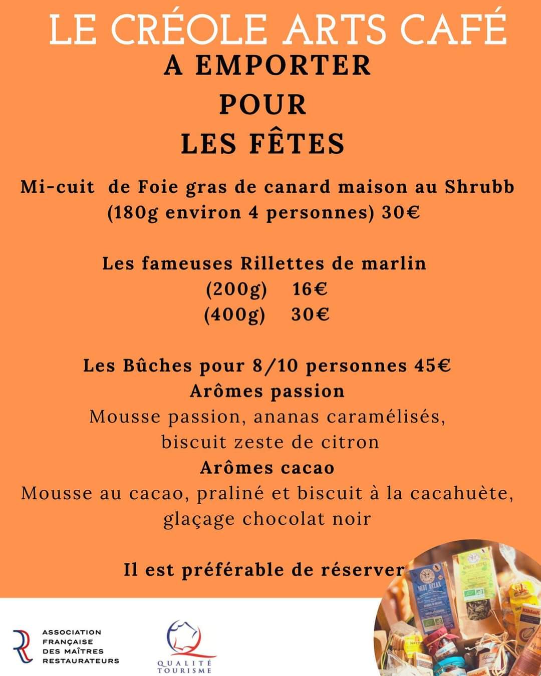 Vous êtes partagés entre le repas local et le repas classique ? Le compromis se trouve au jardin de Sinaï. Il prépare les deux ! Entre le cochon roussi, pois d’Angole et la ballotine de poulet farci ou le magret de canard, tout le monde trouvera son bonheur ! A partir de 20€ avec entrée, plat dessert en fonction de la formule. Le repas de fête sera livré à domicile le 24 décembre à partir de 16h. La commande est à effectuer sur leur site internet www.lesjardinsdesinai.fr ou en vente à distance au 0696 728341 avant le 21 décembre 19h. Vous pouvez aussi commander des plateaux apéritifs à 20€, punch coco à 12€, jus et chocolat communion à 5€.