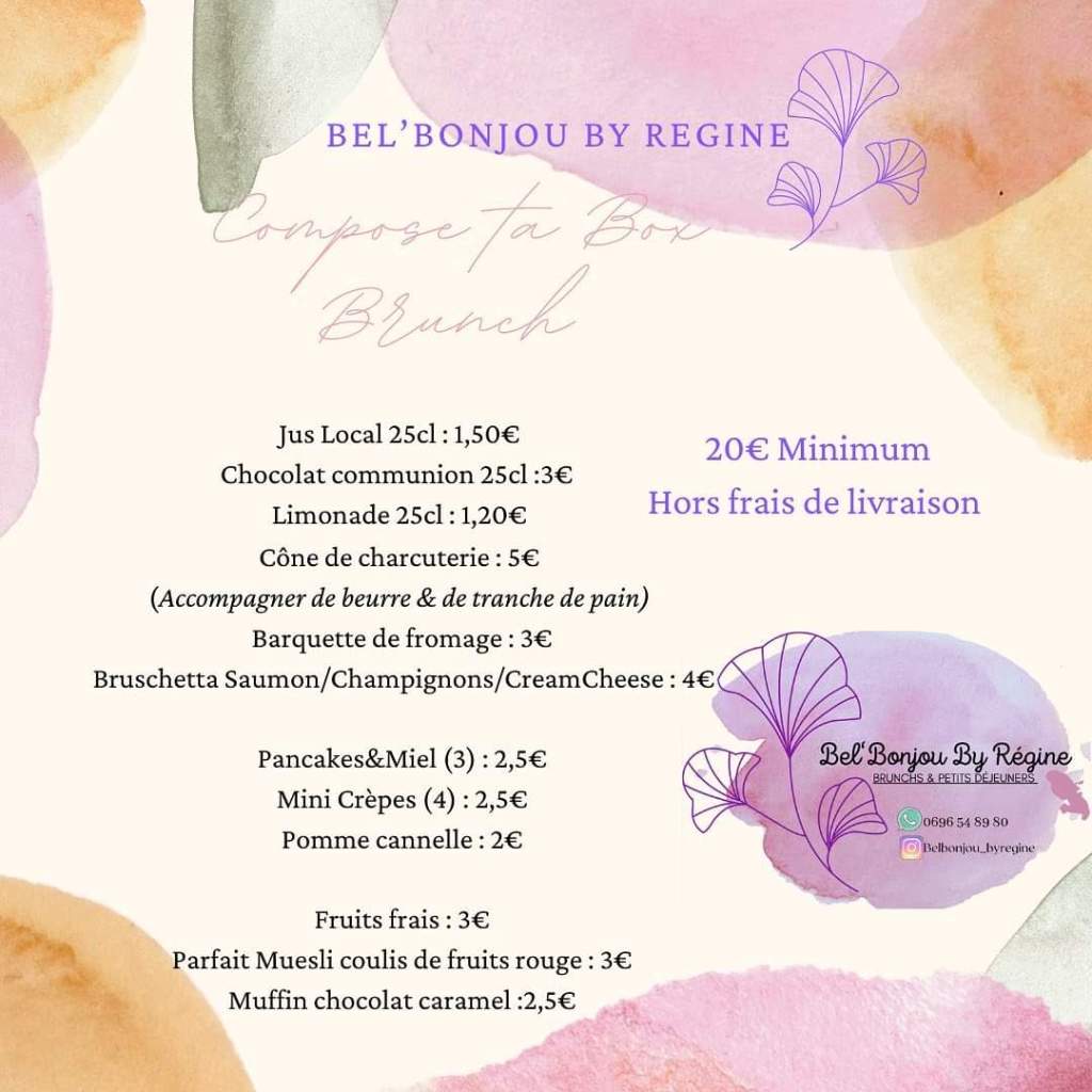 Bel bonjou by Régine vous propose de composer votre Box Brunch. Passez vos commandes 48h à l’avance au 0696548980 via WhatsApp.