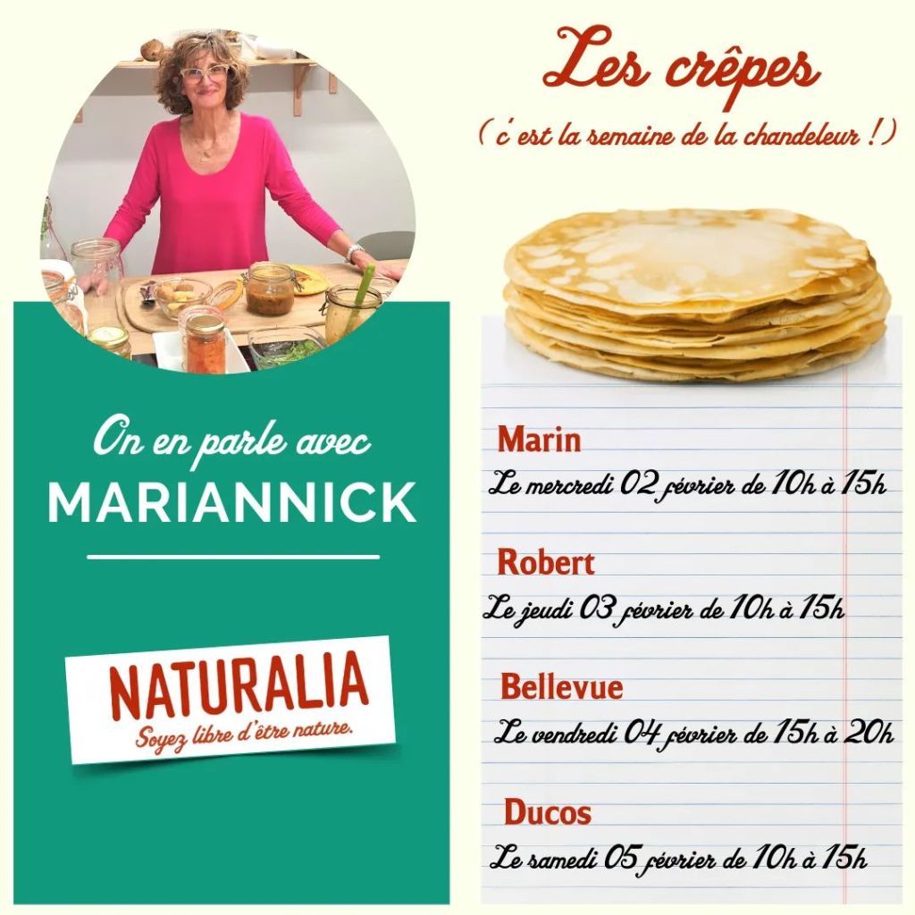 Sinon, Naturalia propose 4 ateliers crêpes à compter de mardi 1er février.