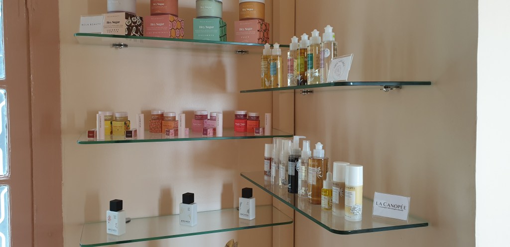 Nous avons été divinement accueillis. Notre hôtesse nous a présenté le salon, la carte des soins, les produits et l’espace beauté.