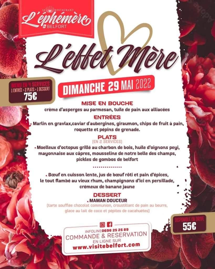 Le restaurant Comtesse du Barry à Fort de France célèbre aussi les mamans ! L’animation musicale sera assurée par Orlane. Le Chef Frédéric LETON vous propose son déjeuner dégustation en 5 temps. Une mise en bouche, suivi d’une terrine de foie gras marbré et d’un toast avocat et crevette au curcuma. Puis, cromesquis de champignons, avec un cœur coulant foie gras, de bœuf confit, accompagné d’une tuile au parmesan et herbes séchées. Vous poursuivrez avec au choix :