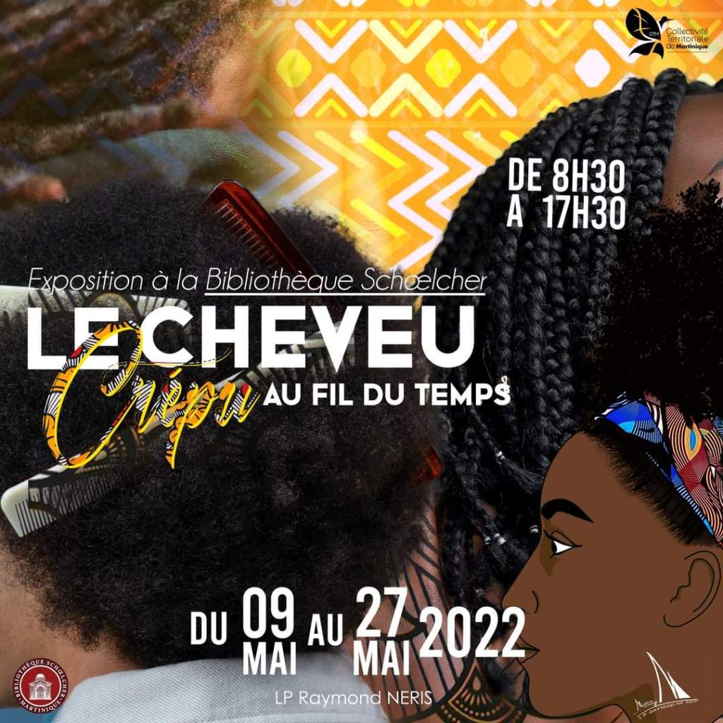 C’est donc tout naturellement que je me suis intéressée à l’exposition réalisée par des élèves de CAP Coiffure du lycée professionnel Raymond Néris du Marin : « Le cheveu crépu au fil du temps : sublimation, rejet et réhabilitation ». Un superbe projet pédagogique.