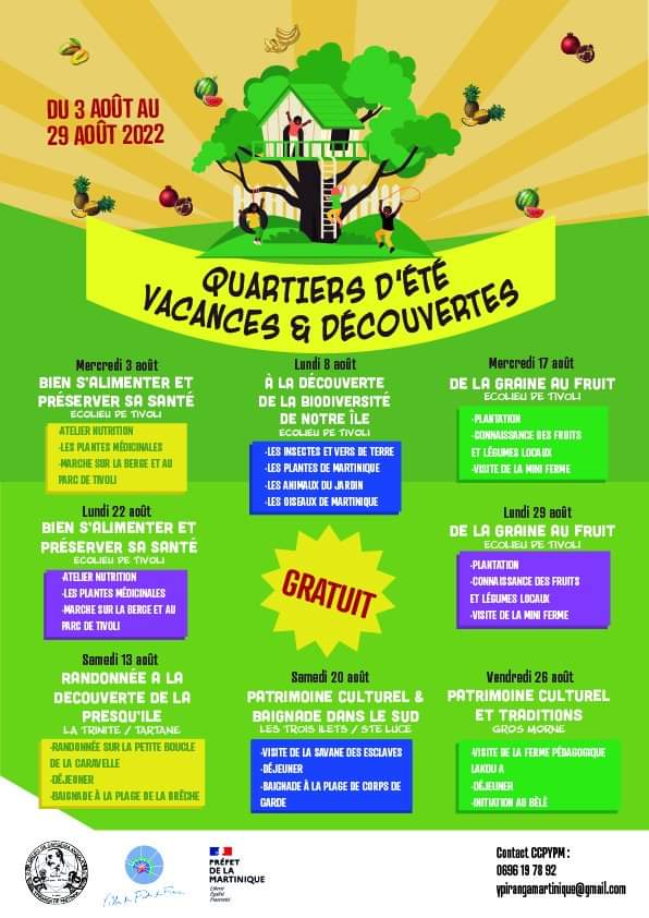 On reste au contact de l’eau le mardi 9 août 2022 avec une initiation à l’aviron, à la voile et/ou au kayak au centre nautique de la Ville de Saint-Pierre. Inscriptions au 0596 645 645 et au 0696 333 781