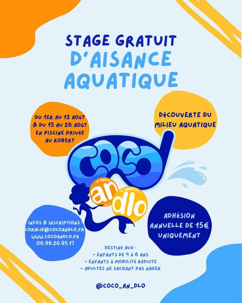 Un stage de natation gratuit et pour tous est organisé par l’association Coco an dlo dont la Présidente n’est autre que Coralie BALMY.