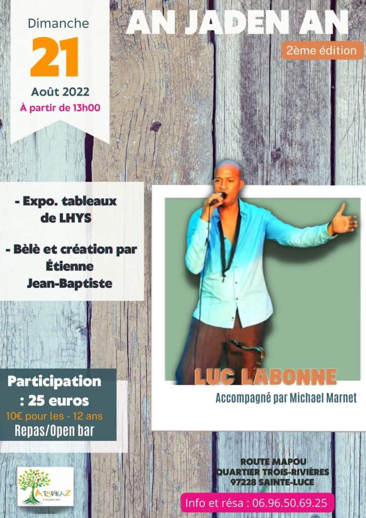 Un grand koudmen sera réalisé par le collectif des ouvriers agricoles empoisonnés par les pesticides au quartier Bochette au Lamentin. Plusieurs artistes seront présents : Nènèto, Elie slam, Nadia midelton, Bèlè Noula, Pasion Bèlè, Bèlè lisid, et plus de 40 artisans avec une exposition vente. Rapprochez vous de la Mairie du Lamentin au 0596 66 68 88 si besoin.
