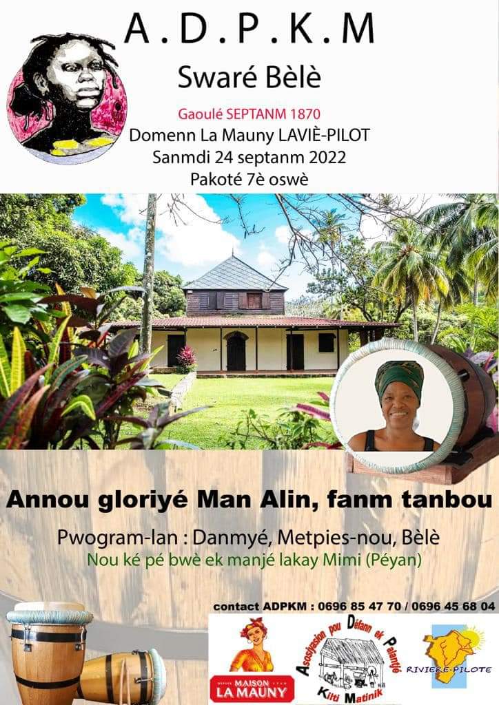 Lespri Danmyé Bèlè vous propose une après midi découverte de l’association de 15h à 19h à l’école Bokannal et à l’école Marcel Placide au Terminus du TCSP. Des initiations seront possibles. Il y aura des châteaux gonflables pour les enfants. Contact au 0696 09 42 21.