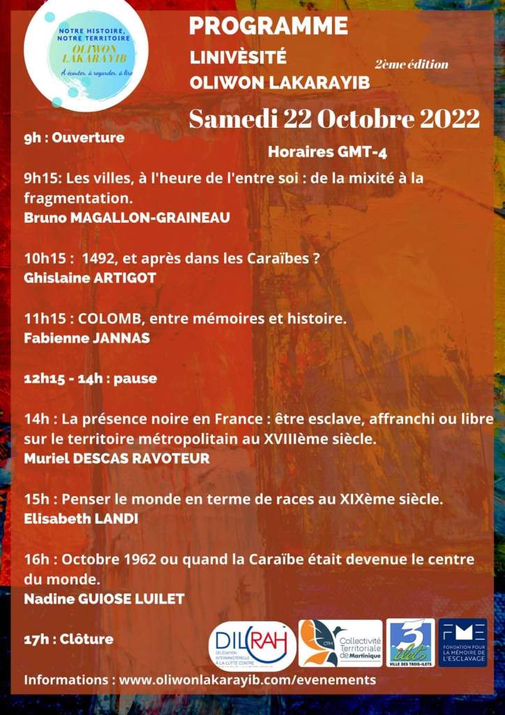 Linivèsité Oliwon Lakarayib (consultez le programme ci-dessous), c’est entre 9h et 17h (GMT-4). Une université populaire, gratuite et en ligne sur YouTube !