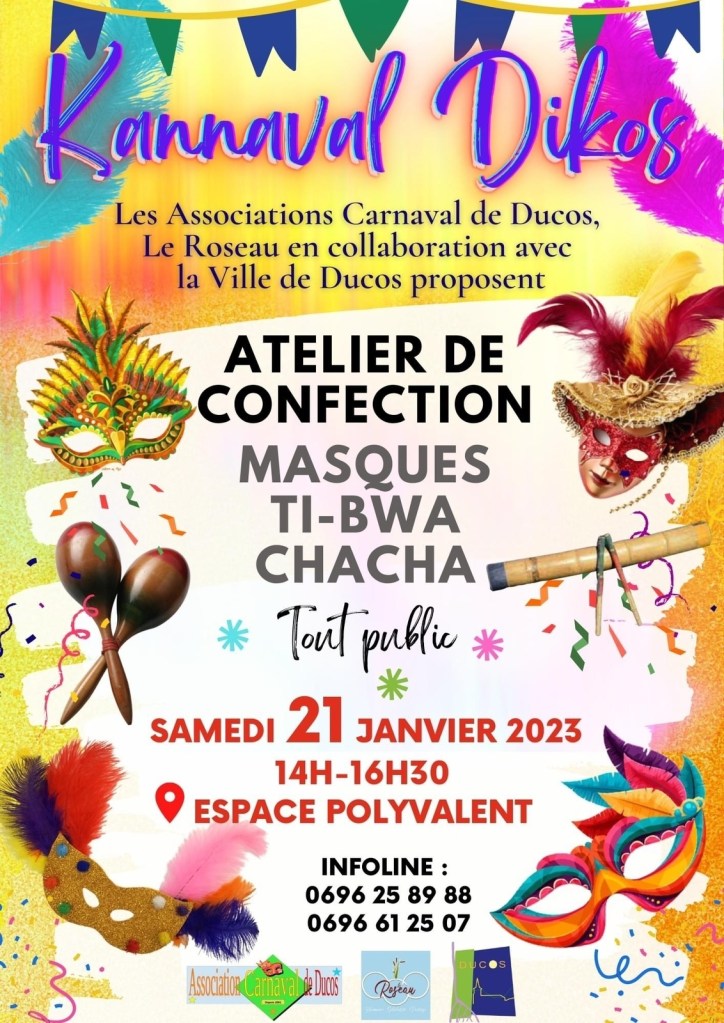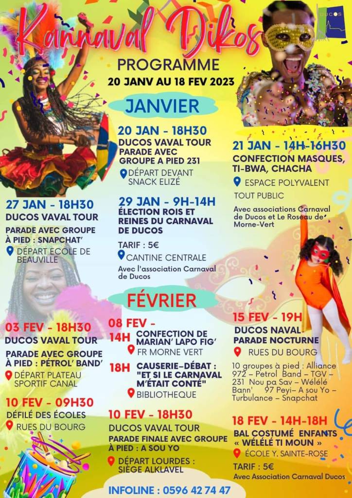 On vous laisse profiter de ce beau week-end qui s’annonce avec le programme de la ville de Ducos. Bon kannaval ! Pensez à vous abonner avec la cloche en haut à droite et on se retrouvera la semaine prochaine !