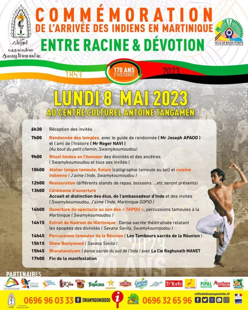 Dans le cadre de la commémoration de l’arrivée des indiens une conférence débat aura lieu à 16h30 au Centre culturel Antoine Tangamen sur le thème de l’Inde aux Antilles puis sur l’intégration des indiens au sein de la population martiniquaise. Le film Paradesi sera par ailleurs projeté à 20h.