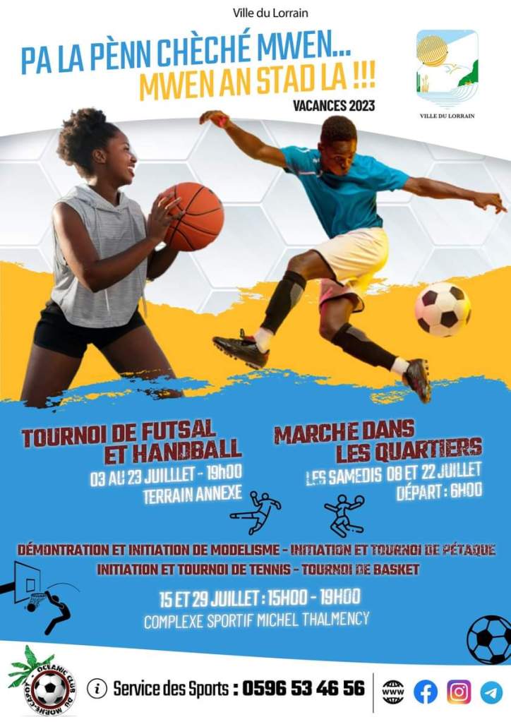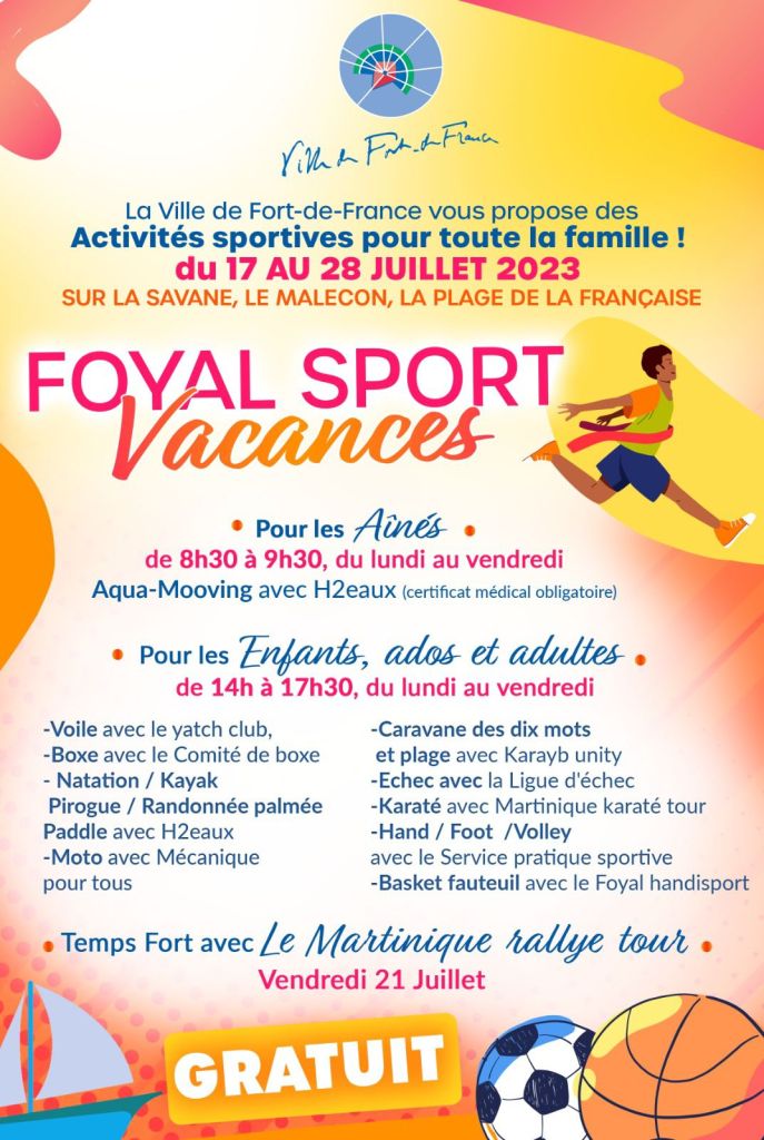 Du 17 au 28 juillet 2023, sur la Savane, le Malecon, la plage de la française … 𝗟𝗮 𝗩𝗶𝗹𝗹𝗲 𝗱𝗲 𝗙𝗼𝗿𝘁-𝗱𝗲-𝗙𝗿𝗮𝗻𝗰𝗲 𝘃𝗼𝘂𝘀 𝗽𝗿𝗼𝗽𝗼𝘀𝗲 𝗱𝗲𝘀 𝗔𝗰𝘁𝗶𝘃𝗶𝘁𝗲́𝘀 𝘀𝗽𝗼𝗿𝘁𝗶𝘃𝗲𝘀 𝗽𝗼𝘂𝗿 𝘁𝗼𝘂𝘁𝗲 𝗹𝗮 𝗳𝗮𝗺𝗶𝗹𝗹𝗲 ! 🏀⛵