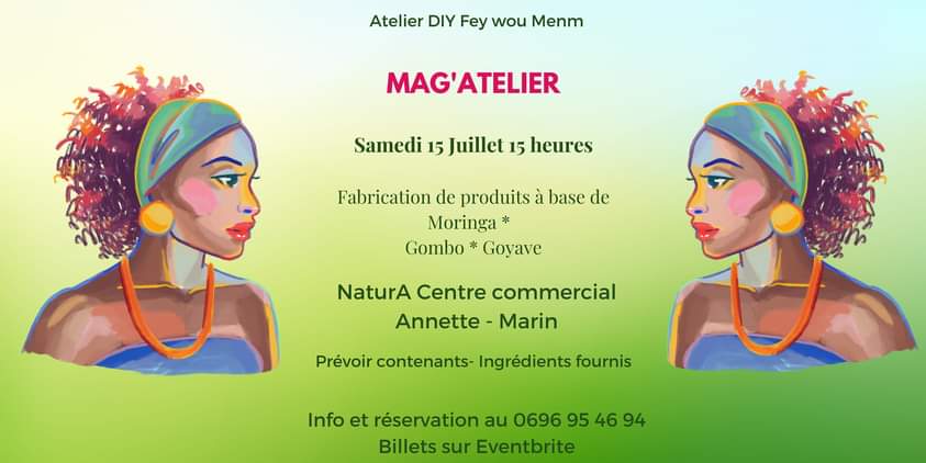 Ne ratez pas l’atelier maré têt avec Emmanuelle Soundjata, styliste créatrice à partir de 17h. Inscription au 0696 30 21 57. Un cocktail « coup d’éclat » sera offert à toutes les participantes. À Trinité à Bobo Café.