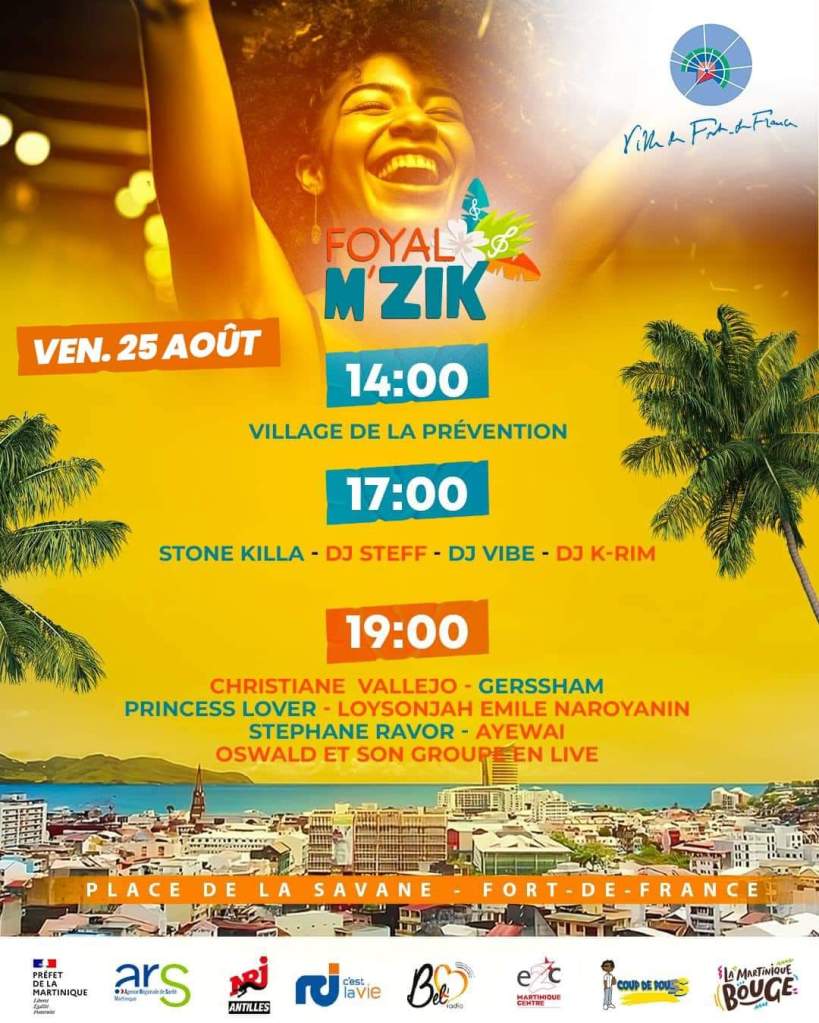 gratuit est fixé le samedi 26 août 2023 à partir de 16 heures sur la place Clarissa Jean-Philippe. La scène accueillera des artistes