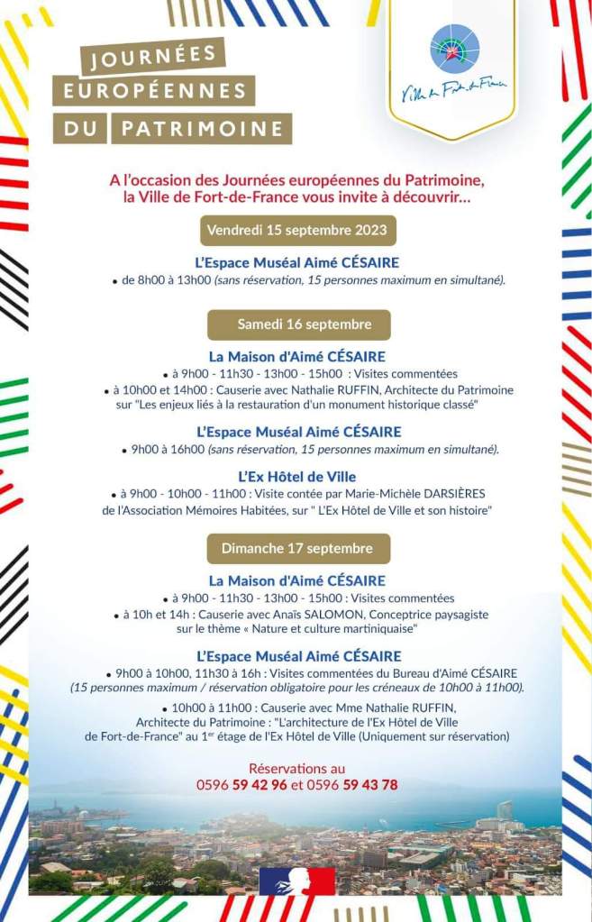 Dans le cadre des Journées Européennes du Patrimoine, la Ville du Saint-Esprit, vous invite à découvrir le patrimoine spiritain lors d’une randonnée urbaine qui se déroulera à 16h. Vous découvrirez la richesse architecturale et les milles petites histoires qui font la grande épopée de notre territoire. Une occasion unique et atypique de découvrir le patrimoine culturel et historique de la ville du Saint-Esprit. Le départ se fera à l’esplanade Raymond Félix Théodose (en face de l’Hôtel de Ville – Rue Schœlcher). C’est gratuit et accessible à tous publics 596 696 61 00 07.