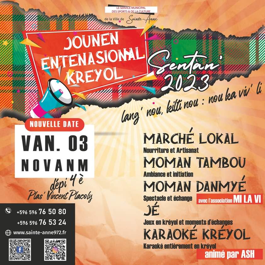 Une formule tanbou bèlè, basse bèlè, batterie bèlè, Steel pan bèlè, trombone bèlè, voix bèlè… avec Simélin Niyabja Lerandy Janbatis, Etienne Jean Baptiste, Artana Fanm Bèlè, Marco Ambroise, Brice Mizik Bapte, Vaity Bel Bis, Bèl Vaity, Michael Marnet, Guylaine Plése, Hélène Jean Charles, DJ Nosss et plein d’autres. Le tarif est à 25€. Contactez le 0596 70 79 29 si besoin.