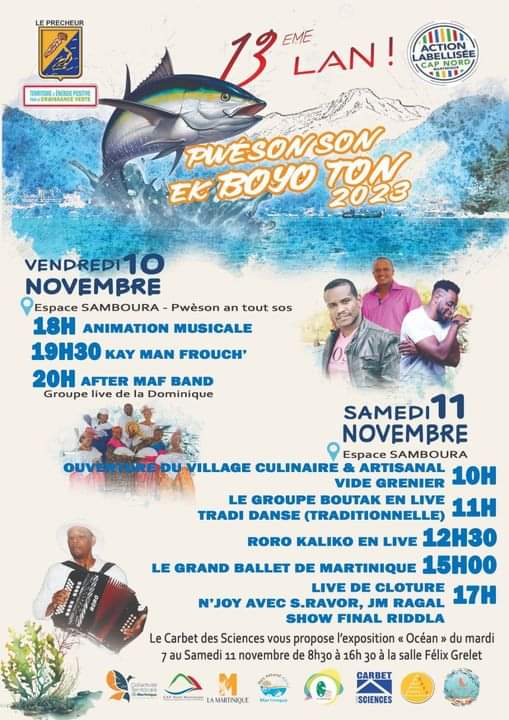 Une matinée culturelle aura lieu de 6h à 17h au quartier Morne coco à Didier avec un mini marché dès 6h. A 8h00 il y aura le partage de la soupe de l’amitié avec Jocelyn Régina et Nestor Mijéré, suivi d’un atelier haute taille. A 10h, ce sera Caraïbe folklore avec du bèlè. Entre 12h et 15h, le groupe Mon’la wo assurera l’ambiance musicale et pour finir ce sera Noël Lyannaj. Contact 0696 85 48 75.