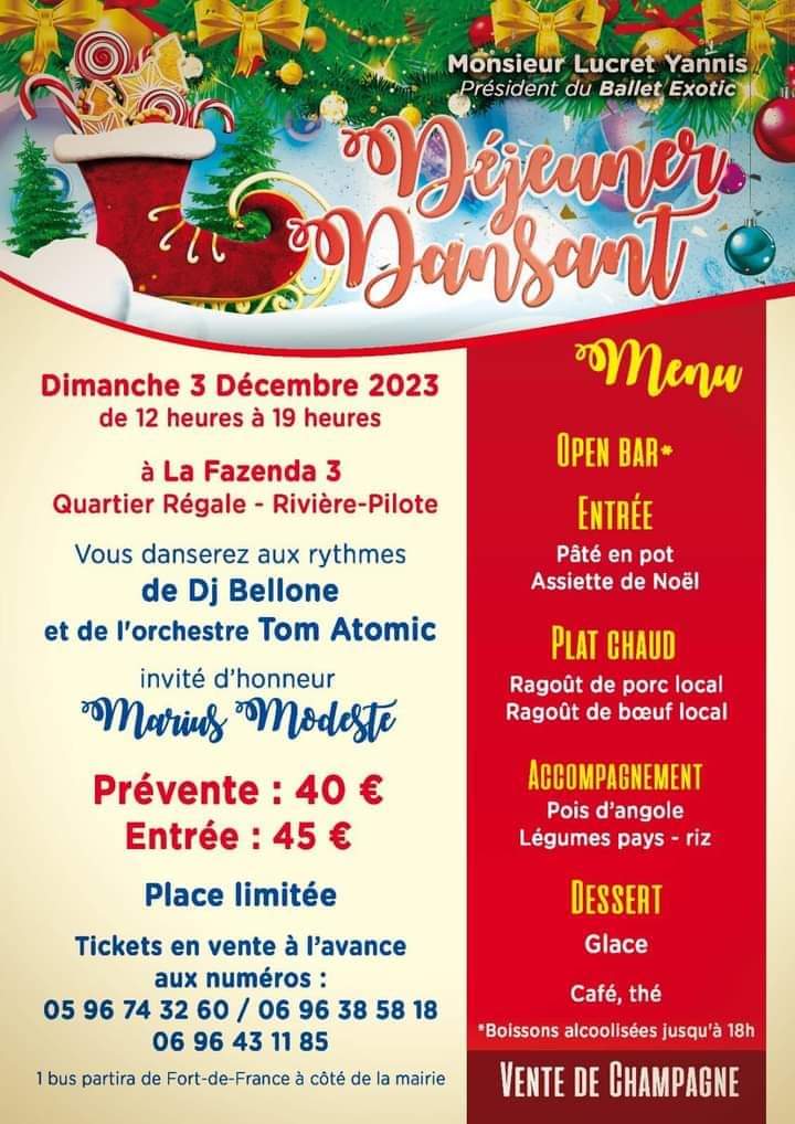 Alliez brunch, marché de Noël et kantik ? ça se passe à l’Impératrice de 10h à 15h pour le brunch Tik tak kantik qui débutera à 18h. Réservez au 0696 63 06 82.