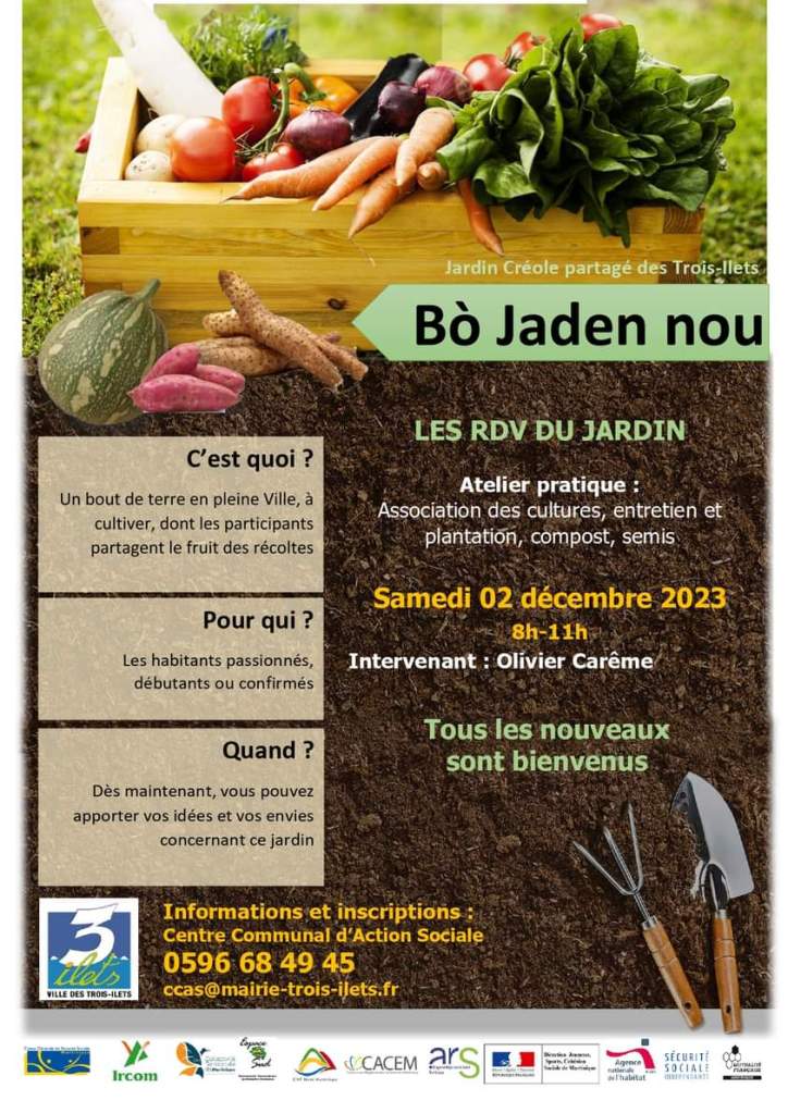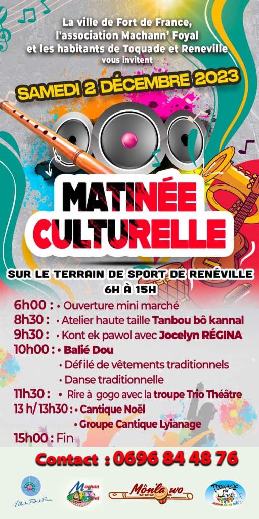 La ville de Saint-Joseph vous convie au village de La Transmartinique en partenariat avec Club Manikou Organisations de 8h à 17h à la Place des fêtes de Saint-Joseph. Venez nombreux profiter d’un artisanat local, de ventes et de dégustations, de grillades, de soupes, de soins du corps, de jeux d’antan et d’un château gonflable. Plus d’informations au 0596 57 60 06 ou 0596 57 46 99.