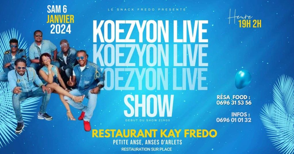A 20h, Ray Trio sera en concert au Kokoarum. Si vous aimez la musique antillaise et danser le zouk, venez passer une soirée inoubliable avec de bons plats et d’excellents cocktails. Réservez votre table au +596 596 48 02 21.
