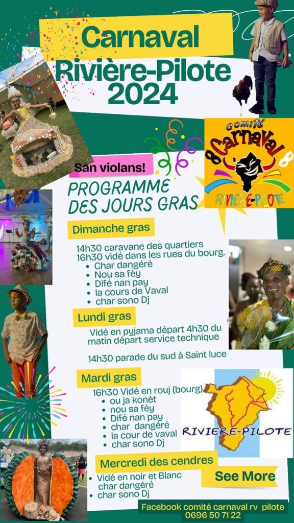 Et même le 21 février pour le Délim’s situé à Sainte Anne +596 696 75 49 13.