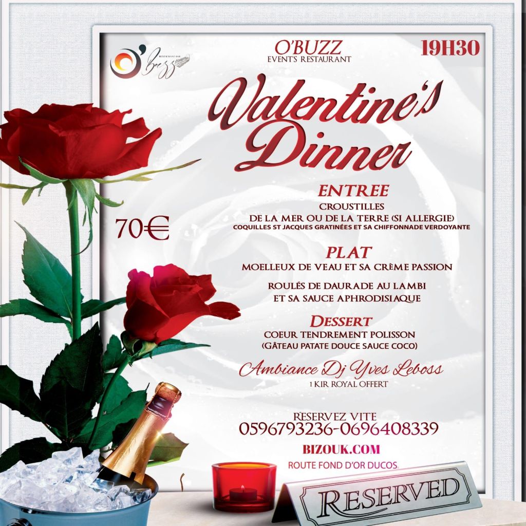 Le jeudi 15 février, réservez au Coco Mango (près de la Tour Lumina) au 0596 69 73 69.