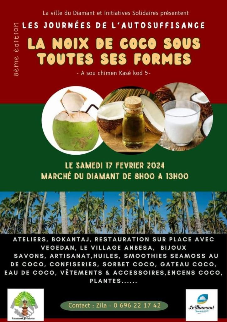 Un marché artisanal se déroulera de 9h à 13h à la Savane des esclaves avec plus de 15 artisans bijoux, savons, confitures, farines, cassaves, huiles essentielles, miel, décorations, objets en bois, liqueurs. L’entrée est à 12€ pour les adultes, 8 pour les ados et 5 pour les enfants.