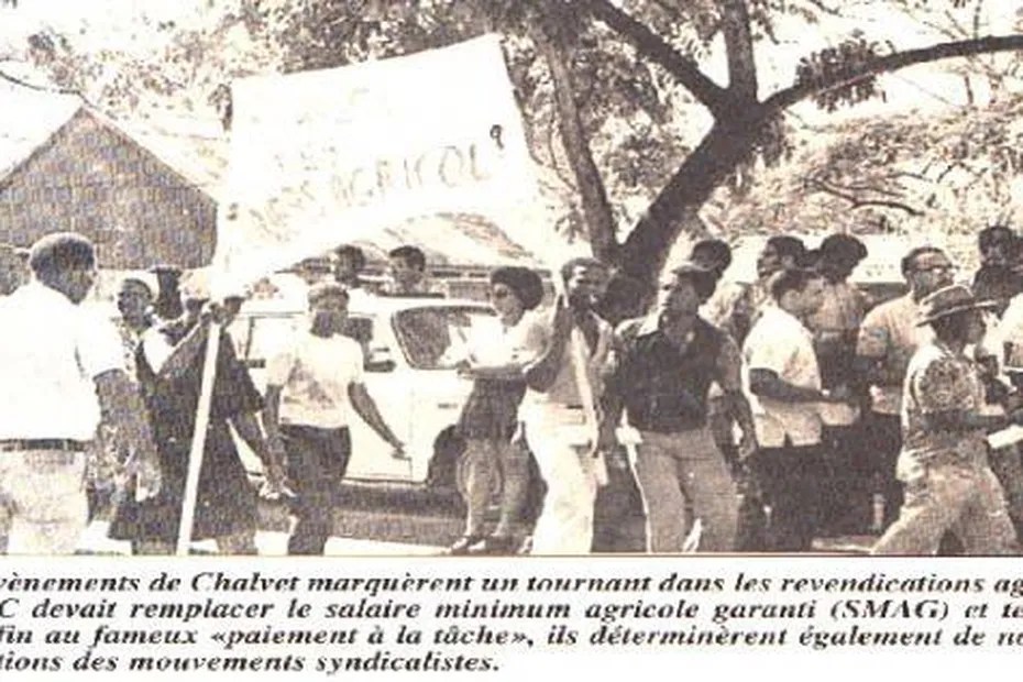 Il est difficile d’associer ces deux termes antinomiques et pourtant, c’est le 14 février 1974 qu’un véritable massacre survient. Des organisations syndicales comme la CGT et le Groupe Septembre 1870 (dont le nom s’inspire de l’insurrection du sud) marchent d’habitations en habitations pour appeler les ouvriers à la grève. Le préfet de l’époque, Christian Orsetti, qui qualifie la grève d’évènement déplorable, ordonne de faire cesser la grève par tous les moyens y compris par la force. Sur la route de Basse-Pointe, sur l’Habitation Chalvet, les ouvriers sont attaqués sans sommation par plus de 200 gendarmes armés.