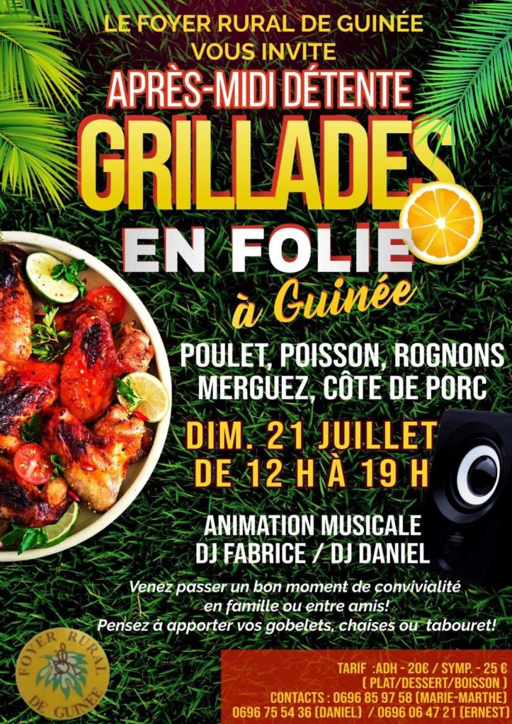 Ne manquez pas le Méchoui du Chill Martinique de 11h à 17h. Venez danser au rythme du groupe ambiance 3D. Dress code : Rose et Blanc. Réservez vite votre place ici.