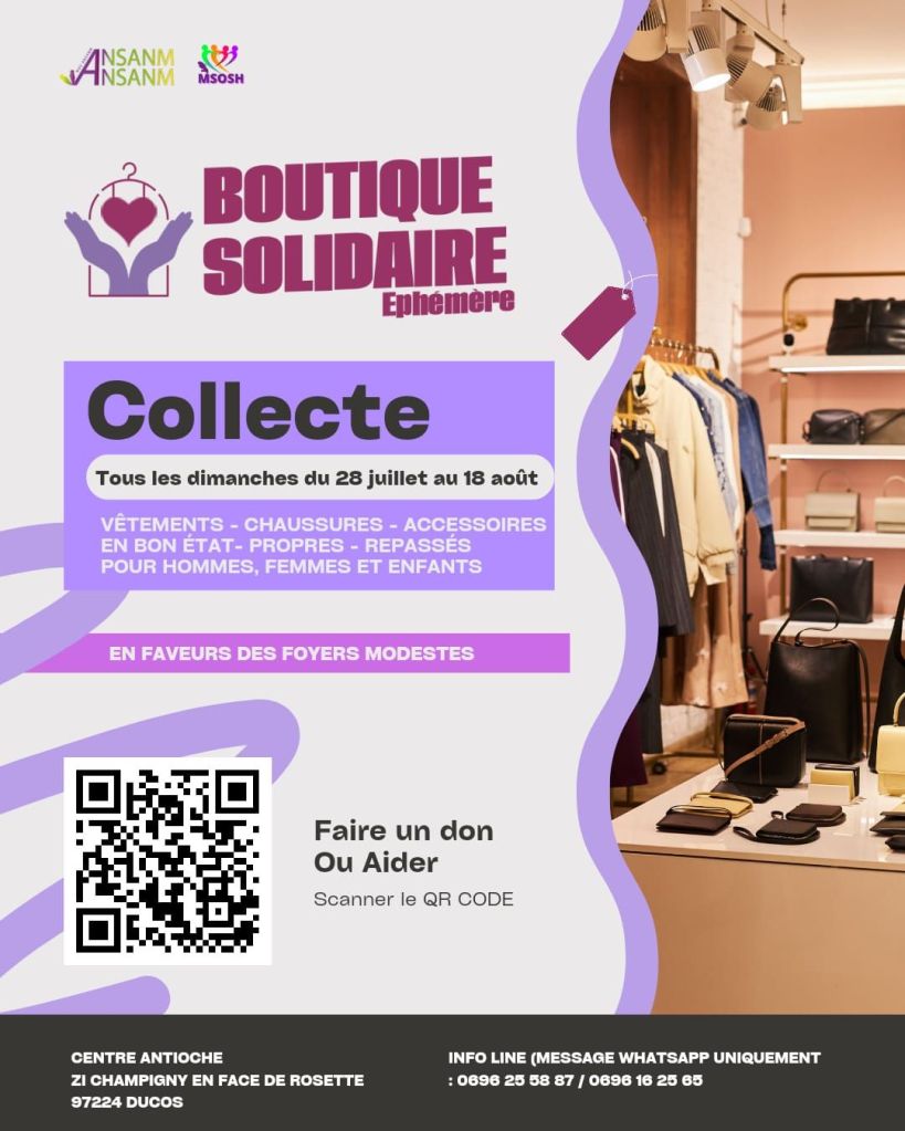 L’association Lasotè vous convie samedi (de 7h à 19h30) et dimanche (jusqu’à 13h) à plusieurs ateliers : jardinage, réalisation de cosmétiques, de vinaigre de fruits, de farine, collier en perle, etc. RDV à Fond-Saint-Denis. Choisissez vos ateliers ! Vous pourrez manger aussi sur place à partir de 15h. Un menu à 16€ vous sera proposé, composé d’un avocat toast, fricassée de ouassous et son dauphinois de fruit-à-pain ou un souskay de mango avec un poulet gourmandise et son gratin de ti-nain. Infoline au +596 696 257 659.