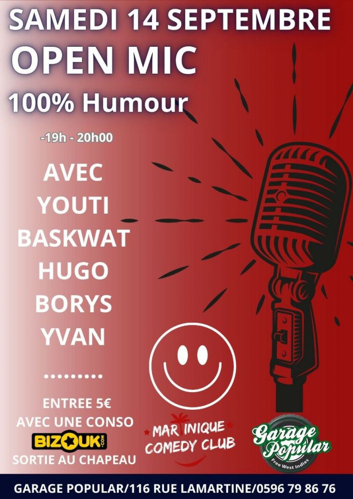 Pass accès à 10€. Réservation fortement conseillée pour diner au 0696244777 / 0596601807 / 0696844727.
