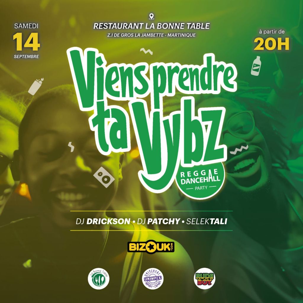 L’association Diaspora Sans Frontières et Domenn Lantik organisent un Déjeuner Solidaire de 12h – 18h au Jardin de la Santé avec un menu élaboré par le Chef Gaby MARTINON. Il y aura le groupe PAKATAK et Stella GONIS. L’objectif est de soutenir un groupe d’agriculteurs pour leur voyage au Bénin dans le cadre de la promotion de l’autonomie alimentaire en Martinique. Il y aura de nombreux stands de produits locaux, une tombola et de nombreuses surprises. Le tarif est de 50€ en prévente et 55€ sur place. Prenez vos places ! Contacts au 0696 97 91 31 ; 0696 89 58 86 ; 0696 50 42 60.