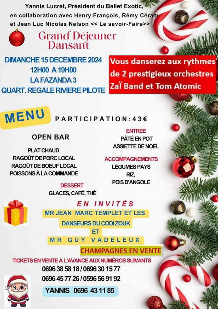 NWEL VILLAGE de la caravane Ravine-Plate sur le front de mer de la ville du Vauclin de 10h à 23h. Plongez au cœur d’une ambiance chaleureuse, découvrez producteurs, artisans créateurs locaux, trouvez des cadeaux originaux et faites le plein de produits du terroir ! Au programme : initiation yole avec Yole Zizitata, ateliers de danse traditionnelle, bèlè et tambour, fête foraine, jeux cadeaux, restauration sur place et chanté Nwel.