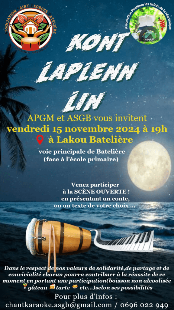La Scène Conventionnée KORZéMO L’ENVOL et Martinique Comedy Club s’associent pour organiser un événement autour du théâtre d’Improvisation. Retrouvez L’ÉKIP JÉNÈS MATNIK qui ont représenté la Martinique lors du “Trophée d’Impro Culture et Diversité” à Paris en juin 2024. Lauréats du prix du fairplay, ils ont entre 13 et 16 ans et ont une super expérience à vous partager. Au programme : diffusion en avant première du documentaire qui relate leur aventure, un show d’improvisation et temps d’échange avec le public. Toutes les infos sur le lien. Tarif : 5€.