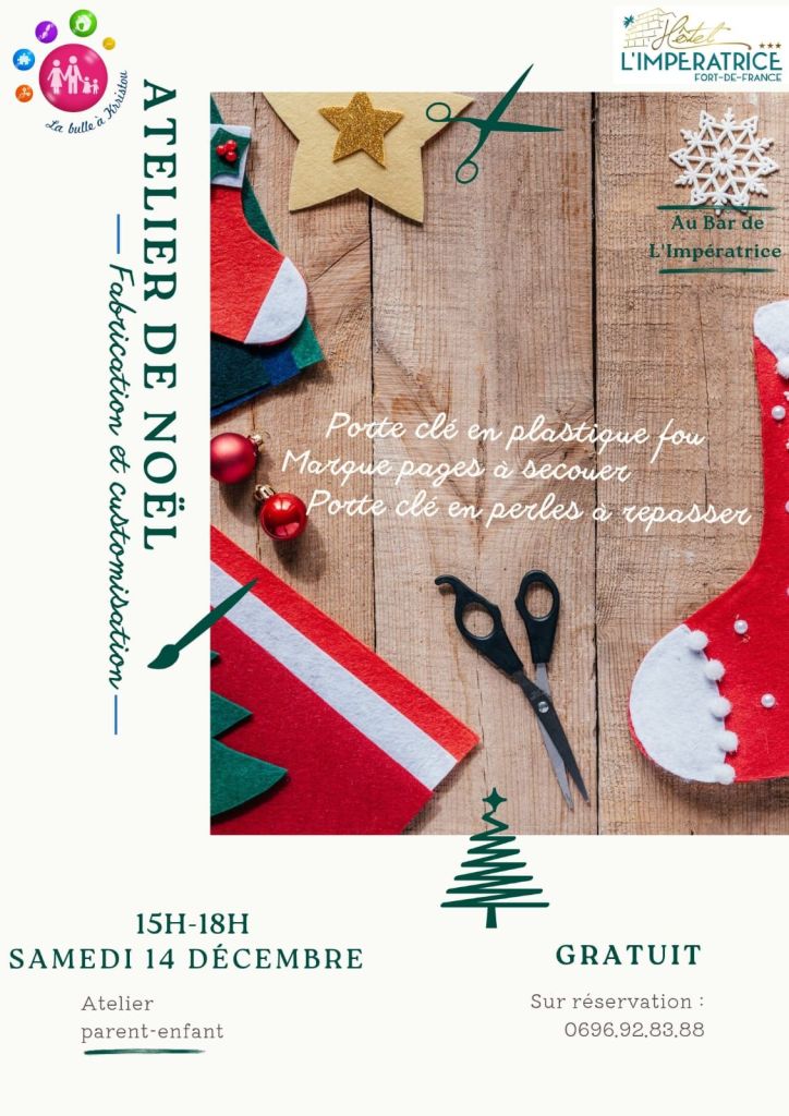 Plongez dans la magie de Noël au Marché de l’École Maternelle « l’Aquarium » à Sainte-Anne à partir de 16h. Au programme : vente de gourmandises sucrées/salées avec des créations uniques réalisés par les enfants. Une rencontre mémorable avec le Père Noël (possibilité de faire des photos) et d’autres surprises vous attendent.