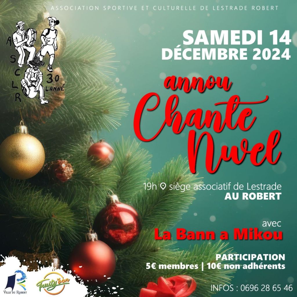 Vivez l’esprit de Noël autrement avec Akwa Bèlè Nwel. Venez bouger et vibrer aux rythmes du bèlè dans une ambiance festive et conviviale de 18h0 à 19h. Bonnet de Noël et touche de madras exigés. 12€ au Centre Aquatique Pierre Samot. Réservez vos places !