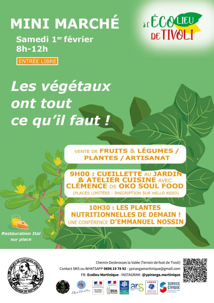 Ti marché Bô Kay c’est des espaces de ventes éphémères chaque samedi dans un quartier différent de la commune de Saint Joseph. Le samedi 1er février, ça se passe au marché du bourg de 7h à 14h. Venez faire le plein de fruits et légumes péyi ! Boucherie, grillades, épicerie anti gaspi, vêtements et accessoires seront aussi sur les étals.