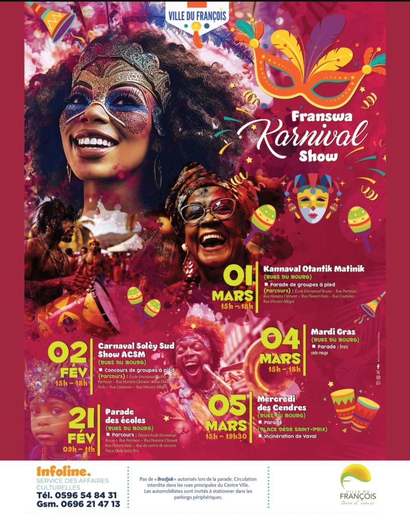 Rendez-vous pour la grande parade carnavalesque nocturne « ZÉTWAL KANNAVAL » du Marin. Départ des Groupes à pied à 18h en face au marché couvert. Venez vibrer au rythme de notre tradition et partager ce moment festif.