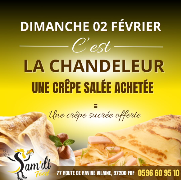 Parce que la Chandeleur rime avec gourmandise, le Baywatch vous gâte dès 11h30. 2 crêpes salées achetées = 1 crêpe sucrée (sucre, nutella ou confiture) offerte. Situé au port de plaisance de l’Etang Zabricot à Fort-de-France. Réservation au 0696 30 77 40.