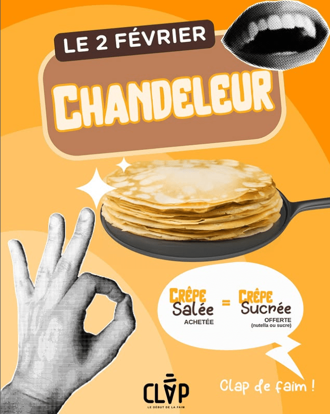 Une crêpe OFFERTE par personne, sur présentation du ticket de caisse ou de la carte de fidélité.