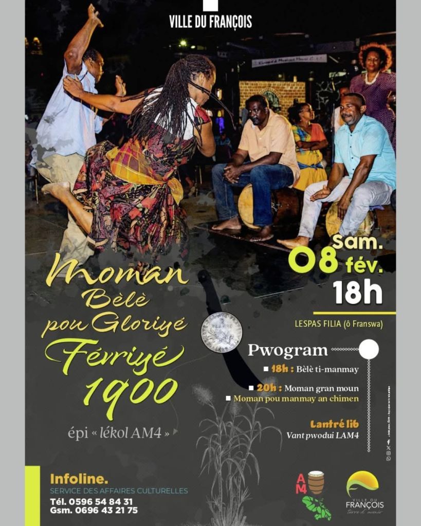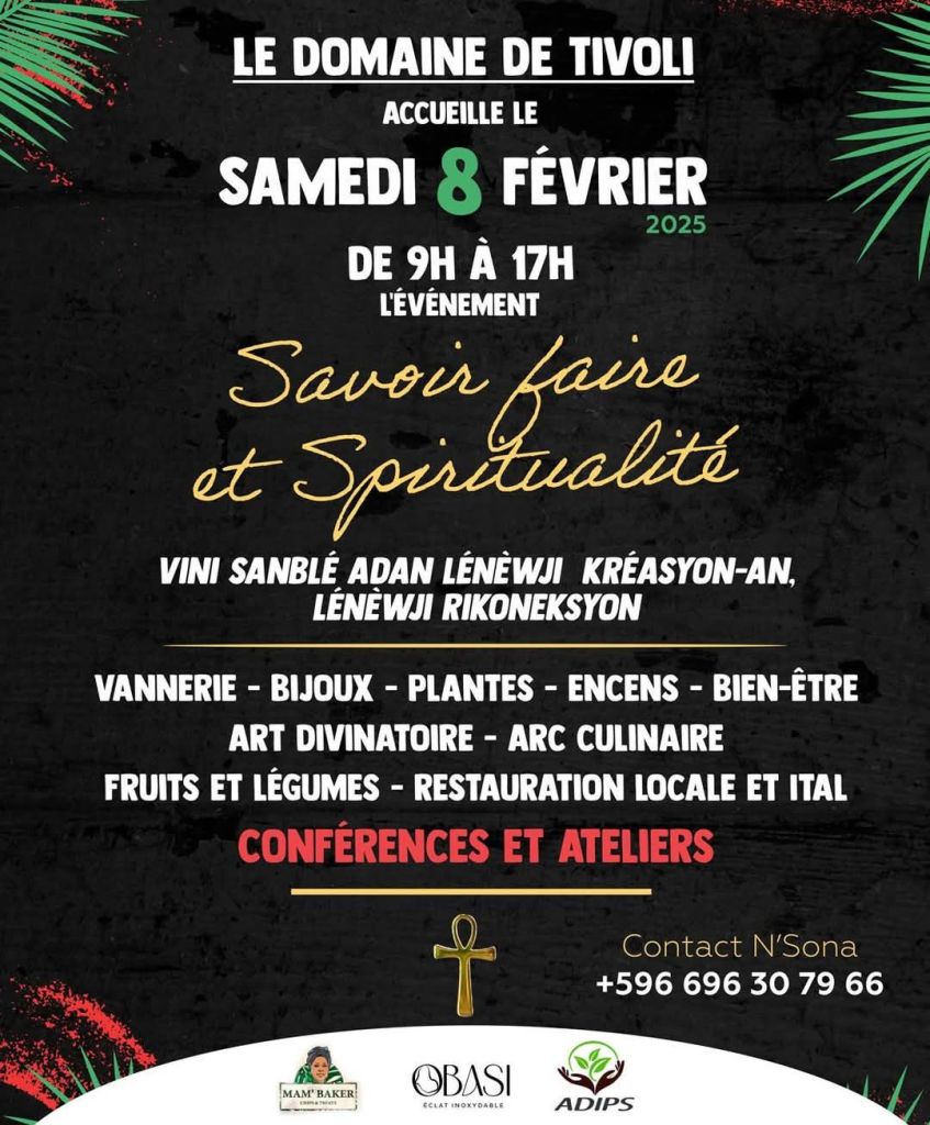 L’Espace Culturel Fitte-Duval du Saint-Esprit vous ouvre ses portes pour une immersion dans l’univers créatif de l’artiste plasticienne Tich’ autour du Carnaval. Venez découvrir des œuvres originales et inspirantes, mêlant tradition et modernité. L’exposition composée de plusieurs dizaines de poupées représentant des personnages emblématiques de notre Carnaval. C’est le dernier jour ! Et ça se passe de 8h30 à 15h30. Renseignements auprès de Catherine au 0596 61 00 07.