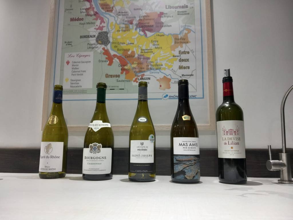 Au total, nous dégusterons 5 vins (2 blancs et 3 rouges) et pour chacun d’entre eux nous devons imaginer un accord met-vin.